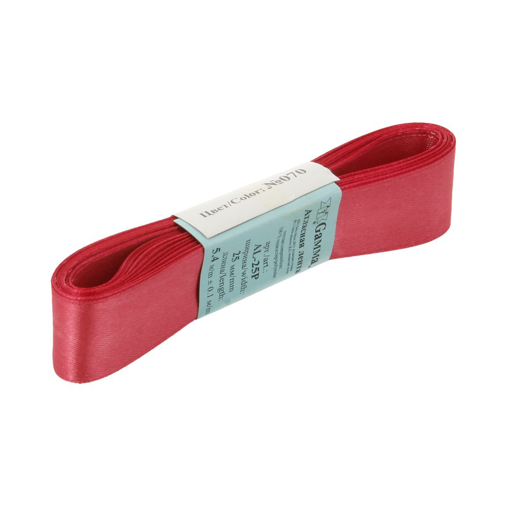Лента атласная 25 мм ( 1 ") "Gamma" ФАСОВКА 5.4 м №070 т.розовый